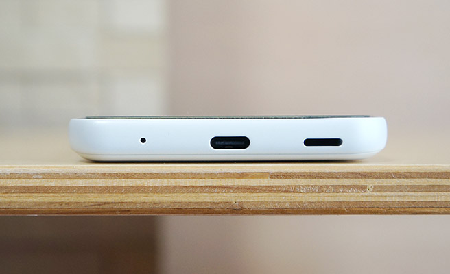 本体の底面には、画面左からマイクとUSB type-C端子、スピーカーがあります。