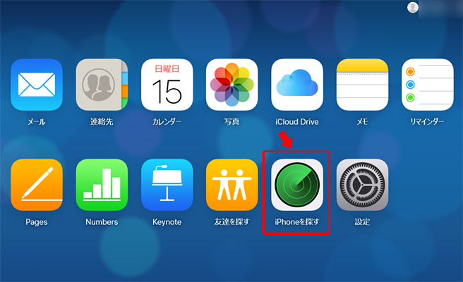 iCloudにサインインすると、iCloud上に保存されているデータや設定などをすることができます。その中のアイコンの「iPhoneを探す」をタップします。